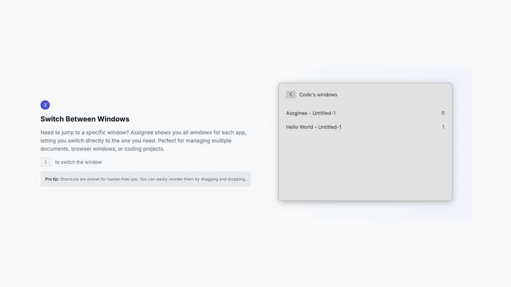 - Multi-window Support: Switch between specific windows within apps. Perfect for multi-window workflows.